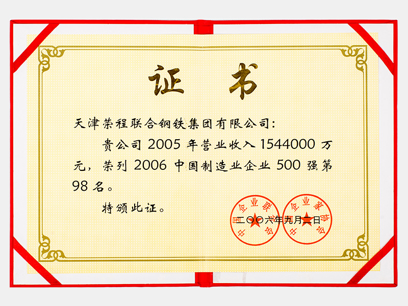 2005年?duì)I業(yè)收入1544000萬元,榮列2006中國制造業(yè)企業(yè)500強(qiáng)第98名