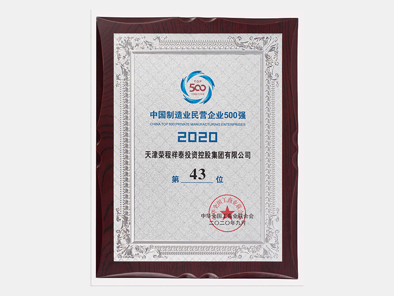 中國(guó)民營(yíng)企業(yè)制造業(yè)500強(qiáng)(2020)第43位