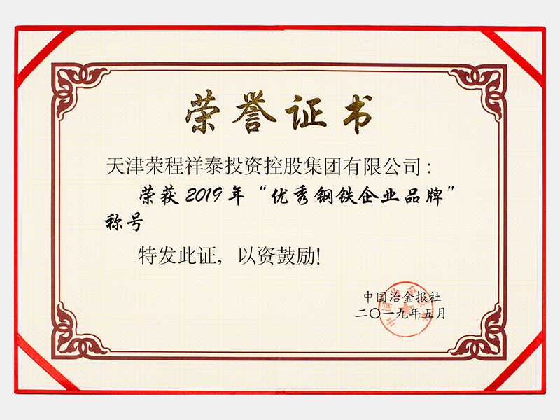 榮獲2019年“優(yōu)秀鋼鐵企業(yè)品牌”稱號(hào)
