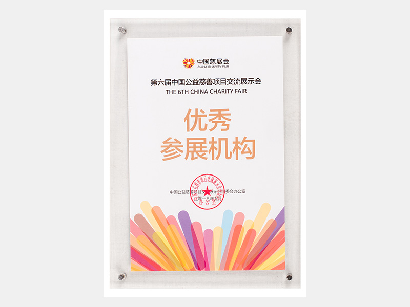 第六屆中國(guó)公益慈善項(xiàng)目交流展示會(huì)參展機(jī)構(gòu)證書(慈善)