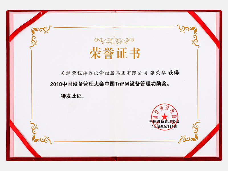 張榮華獲得2018中國(guó)設(shè)備管理大會(huì)中國(guó)TnPM設(shè)備管理功勛獎(jiǎng)